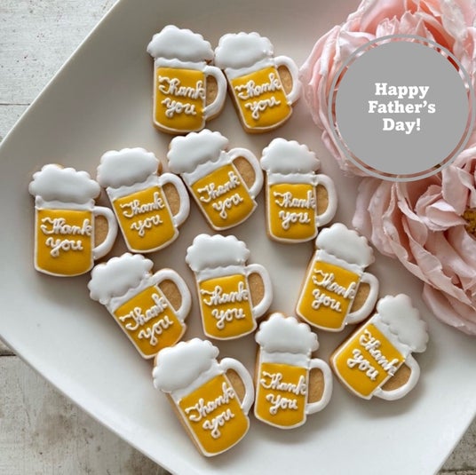 ビールジョッキのアイシングクッキーには「Thank you」のメッセージが。