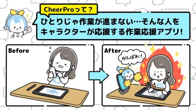 CheerProは、作業をがんばるあなたをキャラクターが応援する「作業応援アプリ」です。