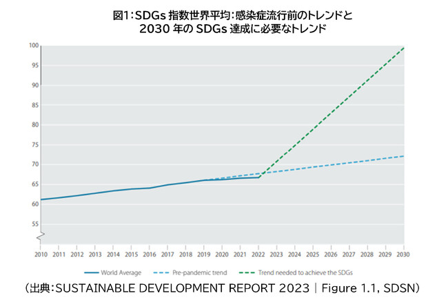 報告書は、SDGs達成に向けてこれまでのペースで進めると、2030年までに目標を達成することは不可能であることに強い危機感を表明しています(図1参照)。「続く未来」のためには、今まで以上のペースで取り組むことが求められています。