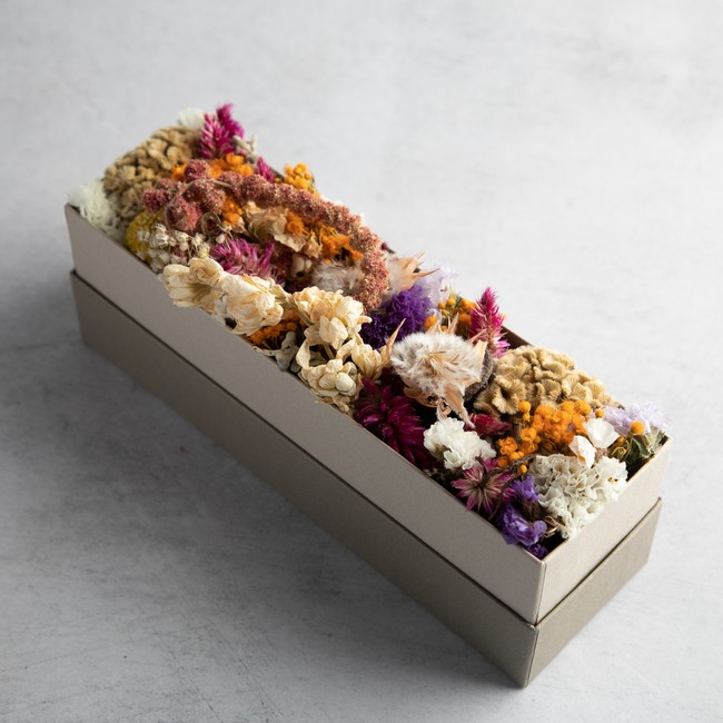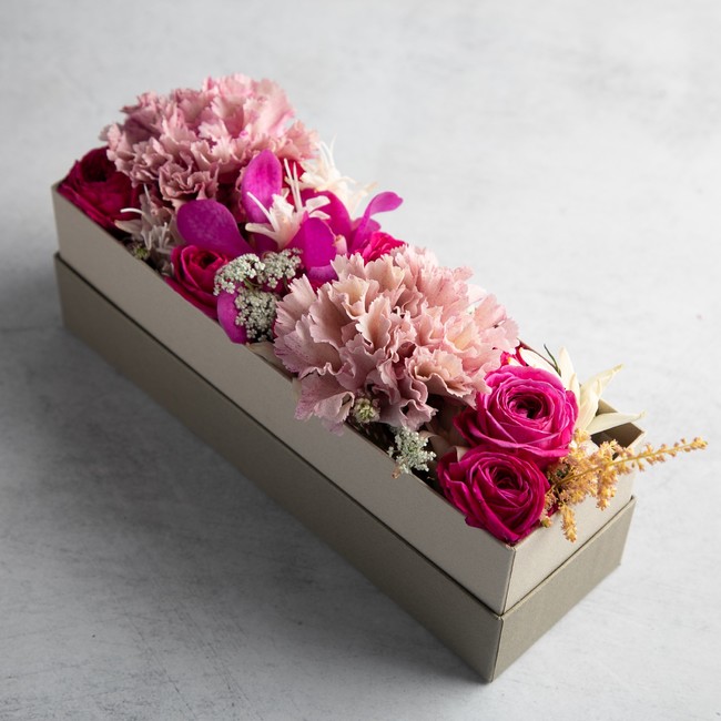 永遠に枯れることのないドライフラワーを使ったアレンジメント。