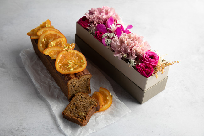 【抹茶 生ショコラテリーヌ&瀬戸内しまなみ産 甘夏とアールグレイのパウンドケーキの2本セットとフラワーボックス】7,800円(税込・送料無料)