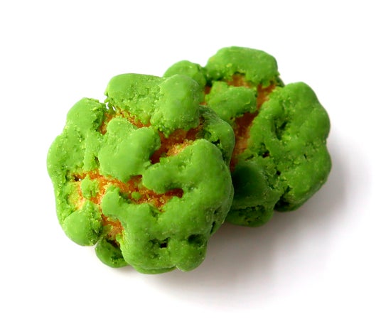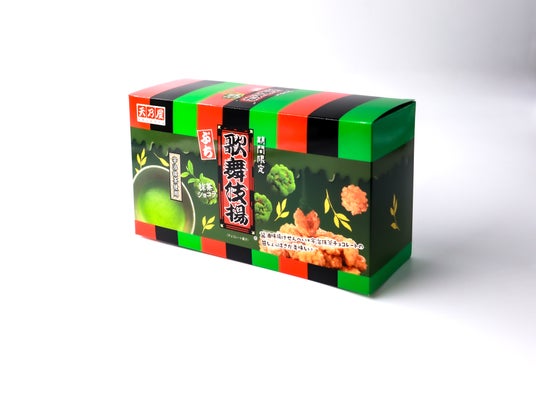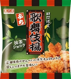 歌舞伎揚は、香ばしく揚げた歌舞伎の家紋入り生地に天乃屋秘伝の甘口しょうゆタレで味付けした風味豊かな揚げせんべいで、1960年発売から皆様に愛されてきたロングセラー商品です。この歌舞伎揚が一口サイズになった「ぷち歌舞伎揚」に宇治抹茶を練り込んだ抹茶チョコレートをコーティングする事で、歌舞伎揚のしょうゆタレの味わいと、甘いチョコレート、ほろ苦い抹茶の味わいが複雑ながら、くせになる美味しさに仕上がっています。