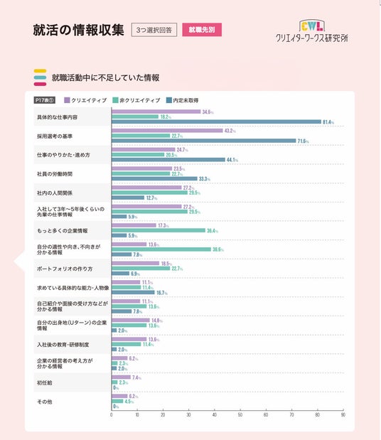 合わせて確認しておきたいのは、24年卒美術系学生の「就職活動において不足していた情報」です。