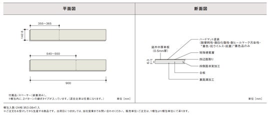 1.抗ウイルス性能 2.抗菌性能 3.耐薬品性能(次亜塩素酸ナトリウム・アルコール使用可) 4.耐汚染性能 5.室内空気環境性能(F☆☆☆☆)