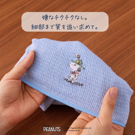 1ヶ月間の受注分のみ、国内にて製造。4月22日~5月22日までの期間限定受注【限定PEANUTSデザイン】は《のんびりキャンプ》。スヌーピーの頭上でウッドストックは呑気にグースカ。朗らかシーンを細部まで美しい刺繍でPEANUTSの世界観を表現しています。2色展開にてご用意し、6月15日より順次お届け、またはプラスニド丸の内にてお渡しとなります。