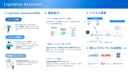 ・SlackやTeamsにて利用できる法人向けAIアシスタントサービス「Lightblue Assistant」