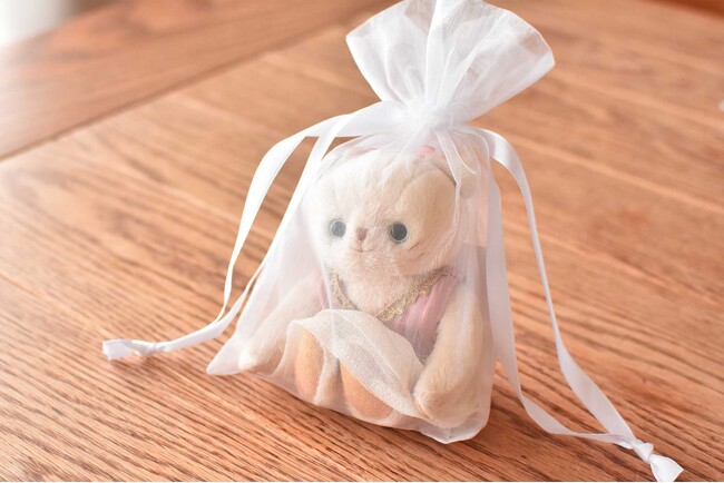 品のある真っ白なオーガンジーの袋入りで、そのままでも贈ることができます。