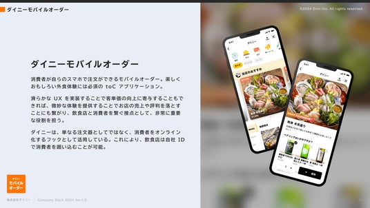 株式会社ダイニーは、「“飲食”をもっと楽しくおもしろく」をミッションに掲げ、すべての人の飲食のインフラとなることを目指し、飲食店向けのモバイルオーダーやID-POSを中心としたサービスを開発・提供しています。飲食業界に入り込み、店舗や従業員、顧客を深く理解したプロダクト開発により、テクノロジーの力で飲食店の経営をサポートし、お客様の飲食店での体験価値を劇的に変えていきます。