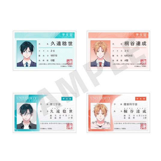 稔世・達成の学生証風バッジは高校生バージョンと大学生バージョンの2種をご用意しました。