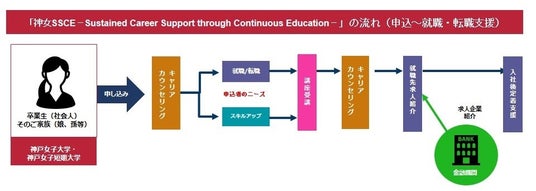当社は、卒業生およびそのご家族へのキャリア相談を行い、個々の希望に沿った講座(無償・有償)を提供し、個人のスキルアップを叶えます。また、当社は金融機関とも連携しており、転職希望者は成長意欲の高い企業への求人紹介を行います。
