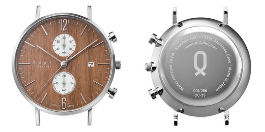 これまでに伝統工芸(漆や箔、螺鈿など)をはじめとするユニークな日本製の腕時計を発売してきたKnotですが、ウッドダイヤルはこの「蘖」が初めての試みです。