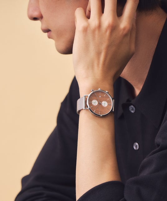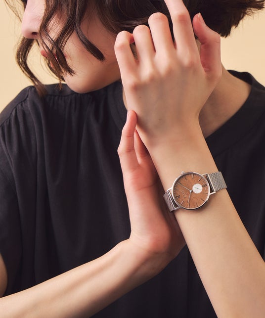 個性的なウッドダイヤルでありながら、普段使いもしやすいデザインのため、綺麗めなスタイリングでも活躍する腕時計です。ジャケットスタイルや、シックで上品なコーディネートでもお楽しみください。
