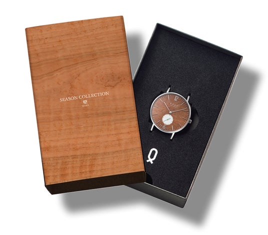 桜は、深みと木目の美しさが特徴です。時計ごとに少しずつ表情が異なるのは、天然木のダイヤルだからこその楽しみ。同じものは一つとしてない、特別な腕時計です。