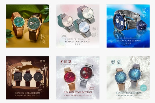 その季節だけに現れる美しい瞬間を、季語を元に時計の中に表現した限定コレクションです。それぞれの季節ごとのコレクションをぜひお楽しみください。