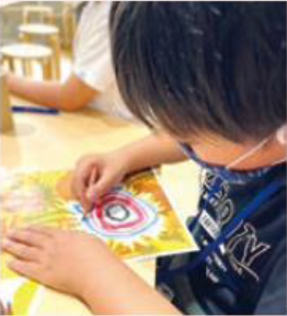 ゴッホの塗り絵を作成し、お客様同士で褒めシールを贈り合うワークショップを開催。