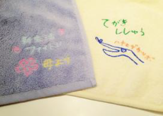 ご自身で描いた文字や絵をハンドタオルに刺繍できるワークショップを開催。