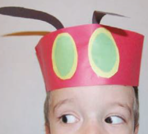 画用紙で可愛いはらぺこあおむしの帽子を作るワークショップを開催。
