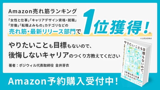 『やりたいことも目標もないので、後悔しないキャリアのつくり方教えてください』が1月23日に発売。Amazonで「女性と仕事」「キャリアデザイン」「労働」「転職よみもの」など複数カテゴリで1位を獲得!