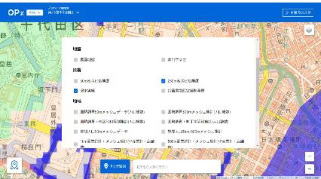 上記のほか、一部地域の地図にOPxで提供する複数のデータを重ねたサンプル表示や、使い方のシミュレーション、データ内容の確認が可能です。