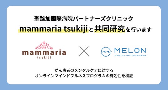 マインドフルネスのプラットフォームを運営する株式会社Melon(本社:東京都港区、代表取締役CEO:橋本 大佑、以下MELON)は、2024年3月より聖路加国際病院パートナーズクリニックであるmammaria tsukijiと共同で、オンラインマインドフルネスの効果を検証する臨床研究を行うことを発表致します。