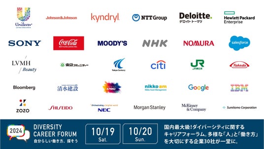ジョンソン・エンド・ジョンソン、デロイトトーマツ、キンドリル ジャパンなど、多様な「人」と「働き方」を大切にする企業30社が一堂に。後援:厚労省、文科省、経団連他。昨年視聴:30万回