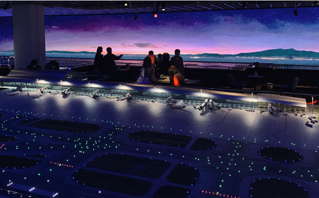 関西国際空港エリアをゆったりと鑑賞できる約80席のラウンジスペースは、空港のビジネスラウンジと同じ高級家具を使用したムーディーなスペースとなっています。