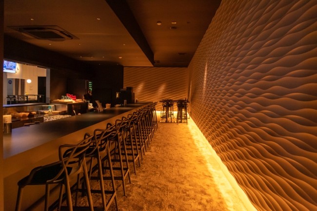 Barカウンター奥にあるVIPルームでは、ロケットの打ち上げを鑑賞することもできます。Barスペースは約20席あり、ホテルのVIPルームのようなモダンな雰囲気が特徴です。