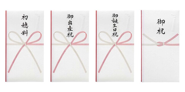 今回、従来品のお祝い用の2種「紅白花結 御祝」「紅白花結 字なし」に、「紅白花結 初穂料」「紅白花結 御出産祝」「紅白花結 御誕生日祝」「紅白結切 御祝」4種が新たに加わり、現代のお祝いシーンに幅広く対応します。