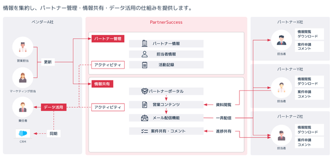 「PartnerSuccess」は、代理店管理・情報共有・データ活用の仕組みを構築し、代理店販売で業績を伸ばす、PRMクラウドサービスです。