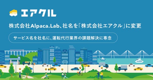 運転代行配車プラットフォーム「AIRCLE(エアクル)」を運営する株式会社Alpaca.Lab(所在地:沖縄県中頭郡中城村南上原1111-1、代表取締役:棚原 生磨)は、2026年4月2日付で社名を株式会社エアクルへ変更することをお知らせいたします。