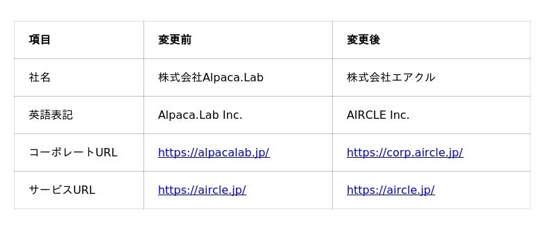 社名:株式会社エアクル(旧:株式会社Alpaca.Lab)