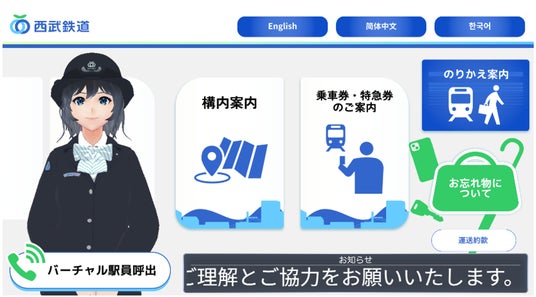 「遊び心をわすれない」をモットーにデジタル技術を活用した様々なソリューションを展開する株式会社 kiwami(本社:東京都千代田区、代表取締役:三鴨 千早、以下「kiwami」)は、西武鉄道株式会社(本社:埼玉県所沢市、社長:小川 周一郎、以下「西武鉄道」)、株式会社西武ホールディングス(本社:東京都豊島区、代表取締役社長兼 COO:西山 隆一郎、以下「西武ホールディングス」)と連携し、「アバター駅係員によるハイブリッド接客サービス」の実証実験を2026年1月16日(金)より所沢駅、練馬駅、東飯能駅、西武新宿駅にて順次実施します。