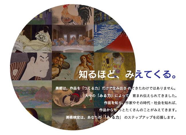 一般社団法人美術検定協会が企画運営している民間検定試験です。美術の知識と知見を高め「みる力」を養うプログラムとして、4級(初級)~1級(最上級)までの4レベルを設けています。