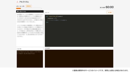 Skill Metrixの試験では、知識を問う問題形式だけでなく、実際にコードを書いていただく問題形式も採用しています。アルゴリズムやSQLに関する試験では、オンラインエディタ上でコードを実際に記述し、実行結果を確認しながら進めていただきます。また、Webアプリケーションに関する試験では、自動レビュー機能を活用し、動作を正確にチェックします。