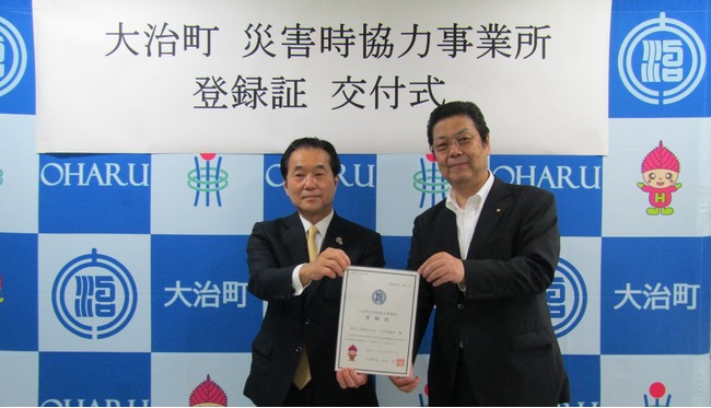 海部郡大治町の災害時協力事業所として登録されました。