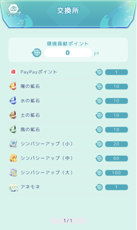 実証期間中にゲーム内で発生するさまざまなミッションをクリアすることにより、ユーザーは環境貢献ポイントを獲得できます。環境貢献ポイントはゲーム内の「メニュー」にある「交換所」で、PayPay ポイントやゲーム内アイテムと交換することが可能です。