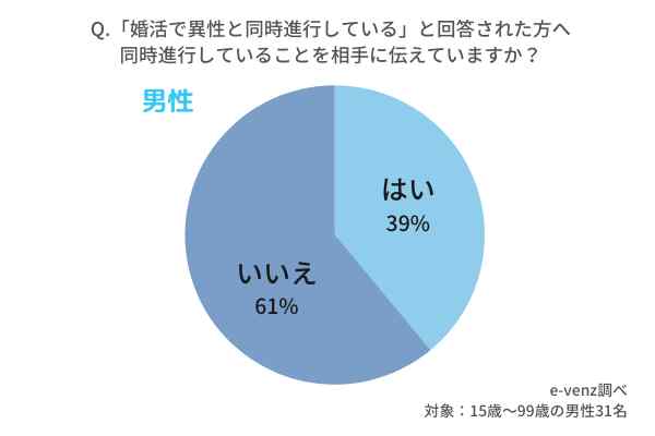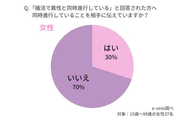 まずは「婚活で異性と同時進行している」と回答された方へ、同時進行していることを相手に伝えているのか調査してみましたので、その調査結果から見ていきましょう。