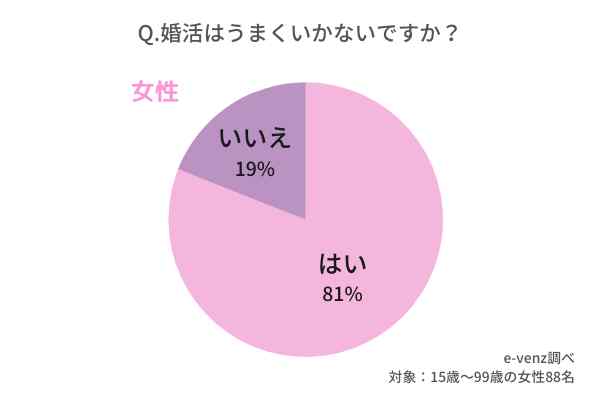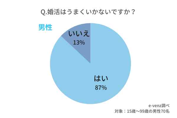 8割以上の男女が婚活にうまくいかないと回答しています。