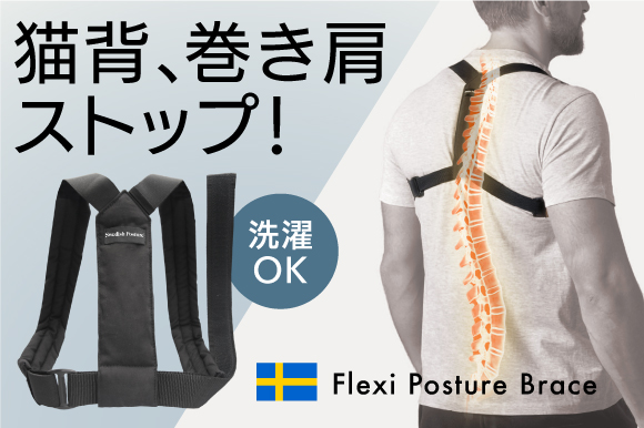 そんな中、いつでもどこでも、短い時間で簡単に姿勢改善効果を得られる製品はないかな?こんなことを考えていたときに『Flexi Posture Brace』に出会いました。