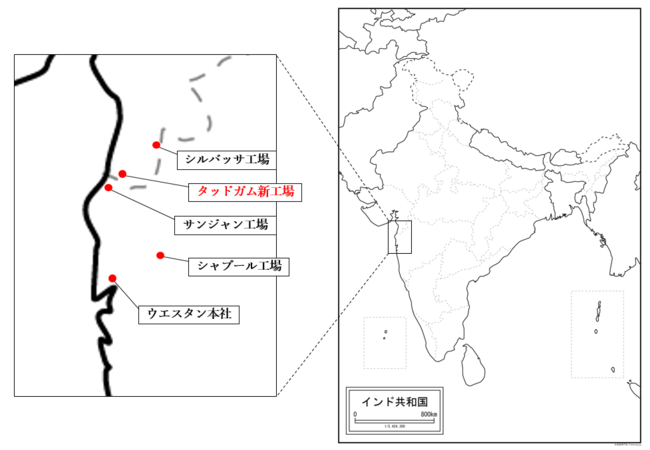 新工場のあるグジャラート州は製造業が盛んで電力供給が安定しており、かつ港へのアクセスも良好にて、物流面でもメリットのある地域です。また、既存のサンジャン工場から北東に10km程度の場所に位置しており、双方の工場間における人材交流や資材・完成品倉庫の共有も容易となり、双方の経営資源活用による効率化が期待できます。