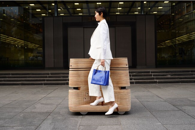 「動く家具」をコンセプトに、歩行者との共存性を考慮して外観にはあたたかみのある木材を使用しています。街路樹の多い街中にもフィットするデザインで、停止中はテーブルやカウンターとして利用できます。