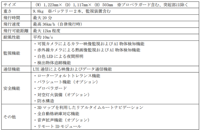 なお、「セコムドローンXX」は防衛装備庁の新技術短期実証事業「ドローン等を用いた監視・検査の自動化・効率化」で実証した内容をベースにしており、航空自衛隊、海上自衛隊の防衛施設向け監視システムの現地実証試験も進行しています。