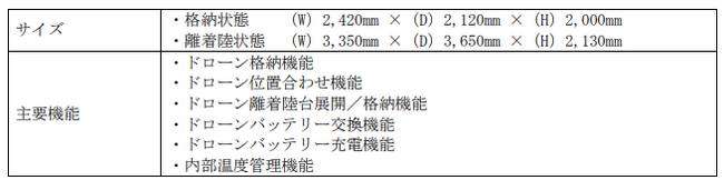 新たに開発した格納庫では、ドローンの格納・離着陸・バッテリー自動交換/自動充電、機体のセルフチェックを全自動で行います。