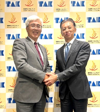 業務提携契約調印式の様子(左はタック株式会社高橋代表取締役社長、右は株式会社保健同人フロンティア平塚代表取締役社長)