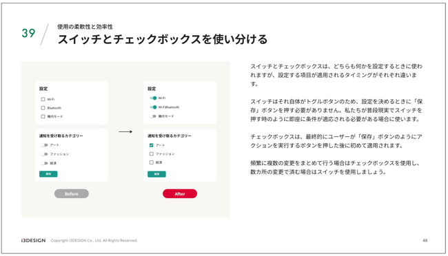 当社は、ビジネスとデザイン、テクノロジーの力で新規事業ならびにイノベーションを創出するDX支援企業です。アイスリー式企業変革メソッドを提供し、エンタープライズからベンチャー企業まで取引実績は延べ450社を超えています。アイスリー式企業変革メソッドは ”Human” “Tech” “Ops” の三象限の企業変革支援プランで構成しております。今回は、様々なクライアント様のプロダクト・サービスの改善を行っていく中で得たユーザビリティを改善するためのヒントをBeforeとAfterでわかるデザイン案と解説をセットで50パターンにまとめました。是非ご活用くださいませ。