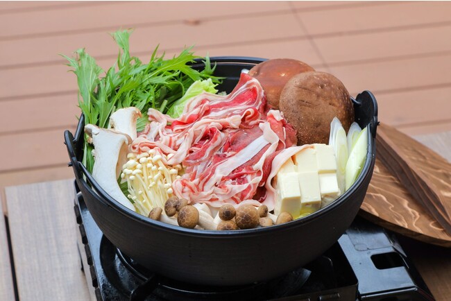 夜 地元で捕獲された猪の肉をしゃぶしゃぶ鍋で味わう