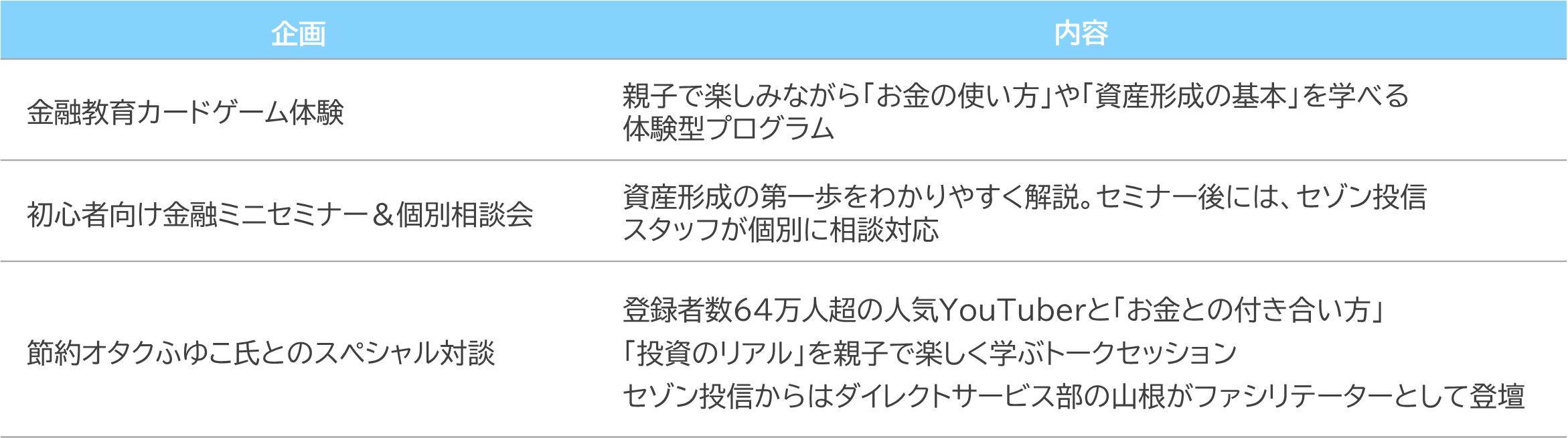 セゾン投信は池袋に本社を置く資産運用会社として、この課題に真正面から取り組みます。地域コミュニティと連携し、親子が楽しみながら学べる金融教育を通じて、将来の資産形成に必要な知識を広げることを目指します。今回のイベントでは、地域課題の解決に貢献し、楽しさと学びを両立させる取り組みで会場を盛り上げます。