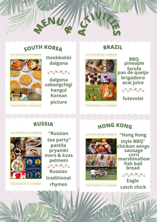 私たちは、このイベントを通じて皆さんに海外や英語に興味を持ってもらいたいと思っています。そして、「Global Learners(グローバルラーナーズ)」として、私たち全員が国際社会の一員であることを再認識し、平和、協力、そして持続可能な発展の重要性を理解してもらいたいと考えています。今回のインターナショナルデーでは、韓国、ブラジル、香港、ロシアの海外文化を体験していただけます。企画運営は全てGLIのスタッフが行います。また、たくさんの賞品やプレゼントもご用意しています。