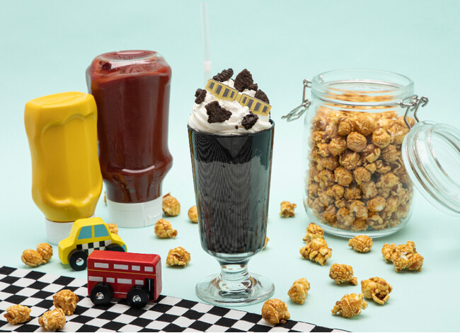 「BOX cafe&space」のメニューは、今回のコンセプトであるアメリカンダイナーを主軸に、各キャラクターをイメージしたメニュー、お好きなキャラクターのデザインを選んでいただけるカフェラテなど、こだわりと遊び心をもった楽しいメニューをご用意しました。