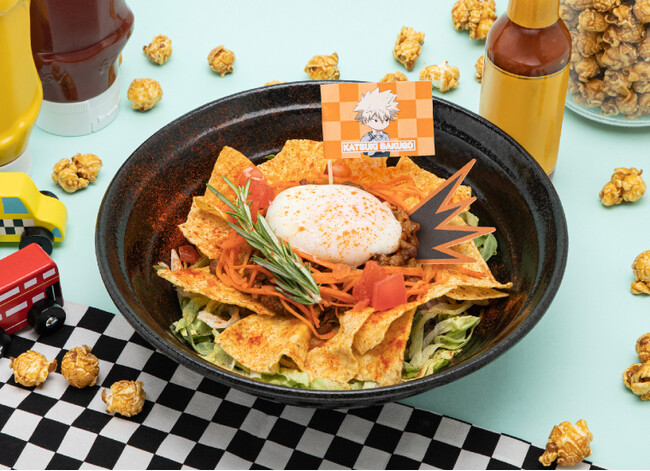 辛い物好きな爆豪勝己をイメージしたカレー味のタコライス。“個性”「爆破」をイメージした